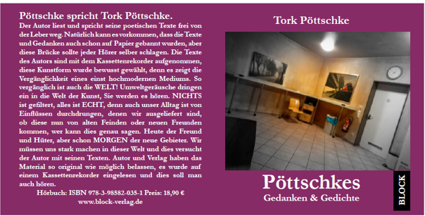 Der Autor liest und spricht seine poetischen Texte frei von der Leber weg. Natürlich kann es vorkommen, dass die Texte und Gedanken auch schon auf Papier gebannt wurden, aber diese Brücke sollte jeder Hörer selber schlagen. Die Texte des Autors sind mit dem Kassettenrekorder aufgenommen, diese Kunstform wurde bewusst gewählt, denn es zeigt die Vergänglichkeit eines einst hochmodernen Mediums. So vergänglich ist auch die WELT! Umweltgeräusche dringen ein in die Welt der Kunst, Sie werden es hören. NICHTS ist gefiltert, alles ist ECHT, denn auch unser Alltag ist von Einflüssen durchdrungen, denen wir ausgeliefert sind, ob diese nun von alten Feinden oder neuen Freunden kommen, wer kann dies genau sagen. Heute der Freund und Hüter, aber schon MORGEN der neue Gebieter. Wir müssen uns stark machen in dieser Welt und dies versucht der Autor mit seinen Texten. Autor und Verlag haben das Material so original wie möglich belassen, es wurde auf einem Kassettenrekorder eingelesen und dies soll man auch hören.